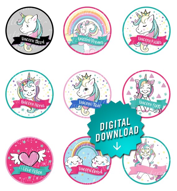 9-2 bottiglia rotonda di unicorno o melma etichette | Etsy