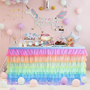 Carnevale Decorazioni Camera Unicorno HBBMagic colorato Gonna Tavolo di Tulle per rettangolo o tavola Rotonda Fatto a Mano Arcobaleno Tulle Decorazione Tavolo per Feste Compleanno Matrimoni Articoli per feste e compleanni Gonne